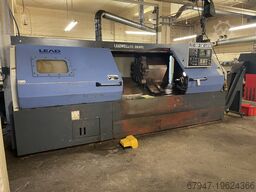 Leadwell LTC 30 BPL, CNC стругов център с управление Fanuc OT, оборудван с 300 мм тричелюстов патрон. Произведен в Япония, приблизително 700 мм люнет и 1500 мм разстояние между центровете, отвор на шпиндела 80 мм, педал за управление от оператора, сериен номер L2SIH0236, транспортьор за стружки.